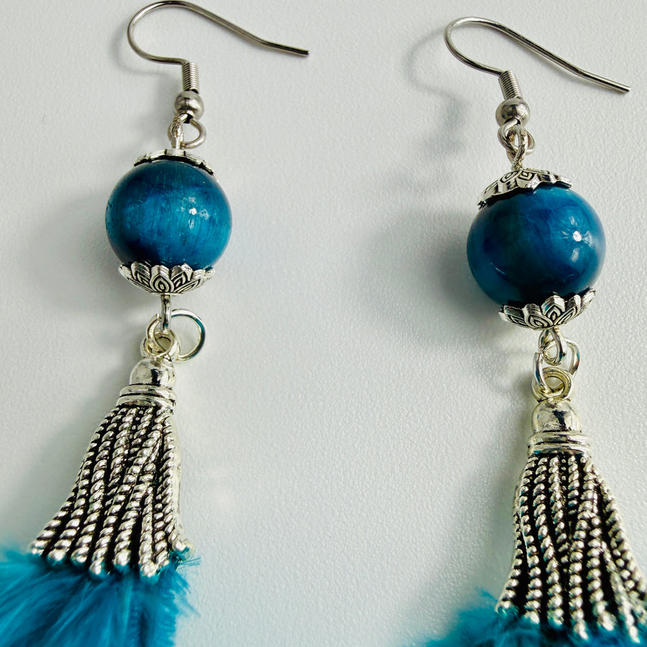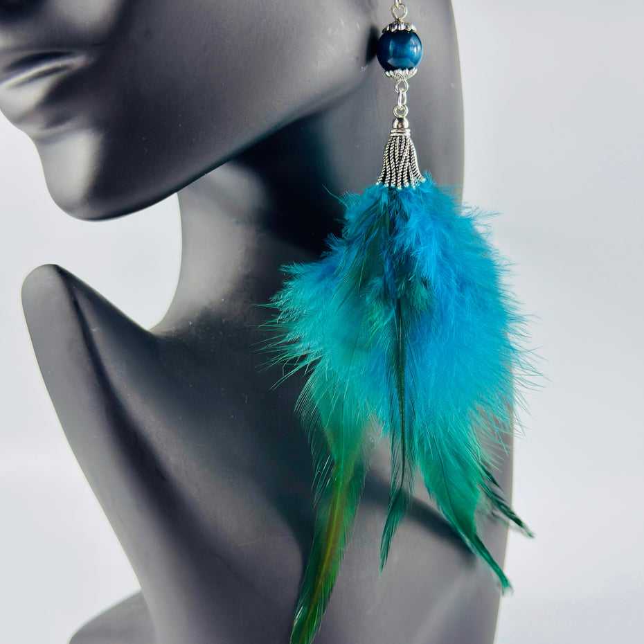 Materialien: Tigeraugen / Edelstahl / Türkisgrüne Feder