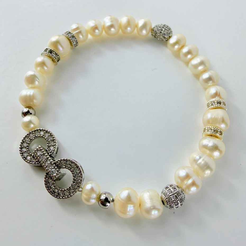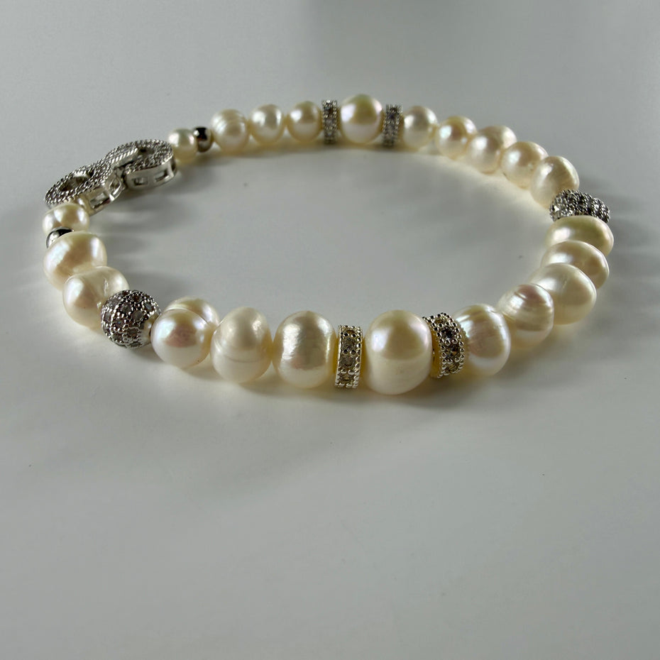 Süsswasser-Perlen Armband mit Zirkonia-Elementen