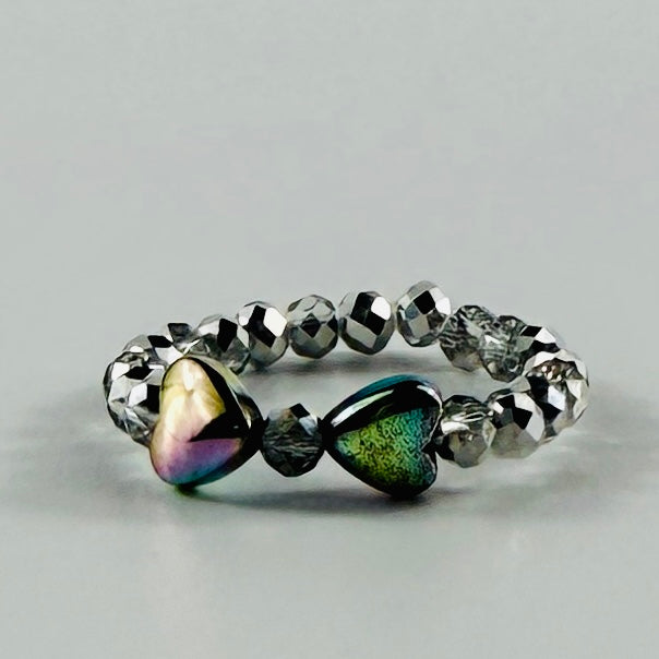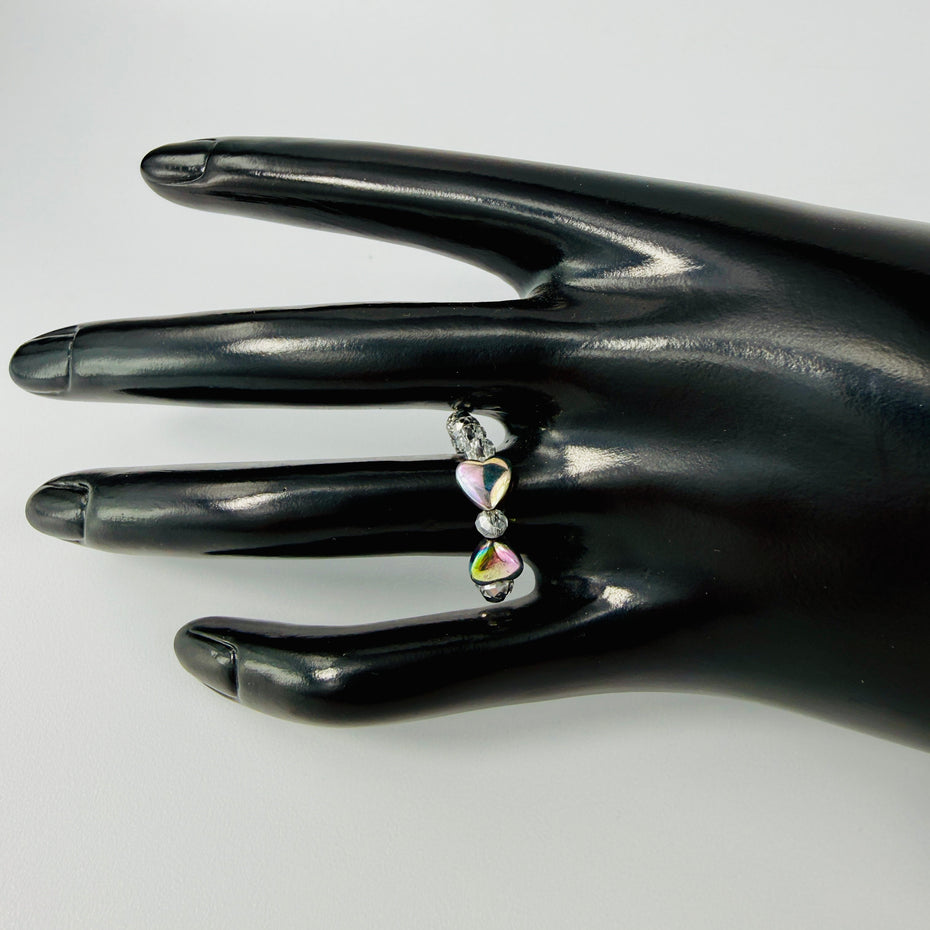 Hämatit Ring mit Schleifen-Design und Glasperlen