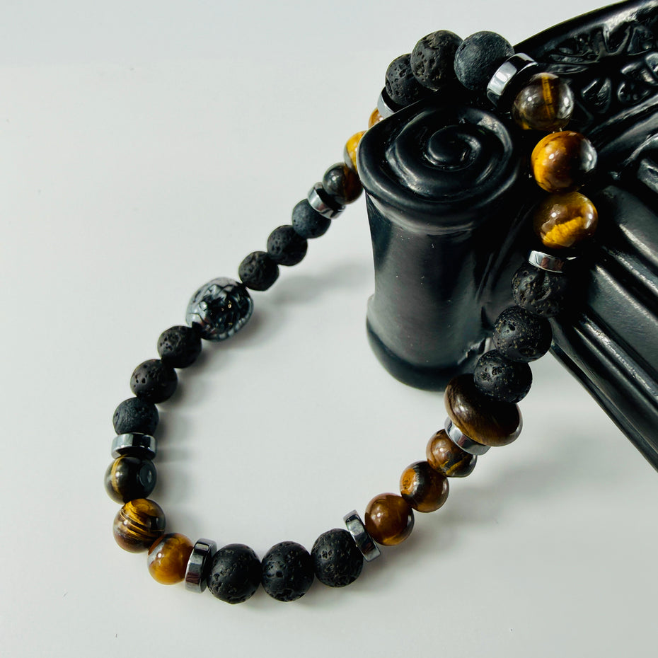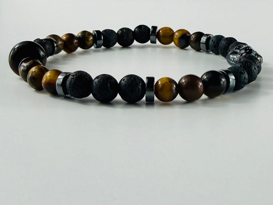 Materialien: Tigeraugen / Lava / silbriger Hämatit