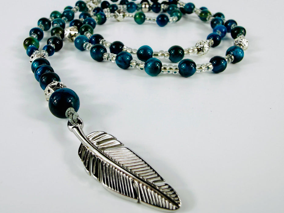 Tigeraugen Halskette mit Lavasteinen und Edelstahl