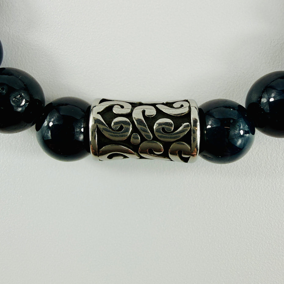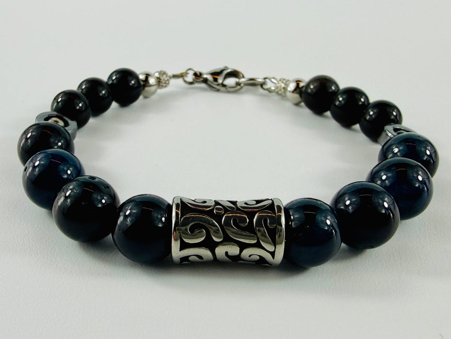 Turmalin Armband mit Obsidian und Edelstahl-Elementen