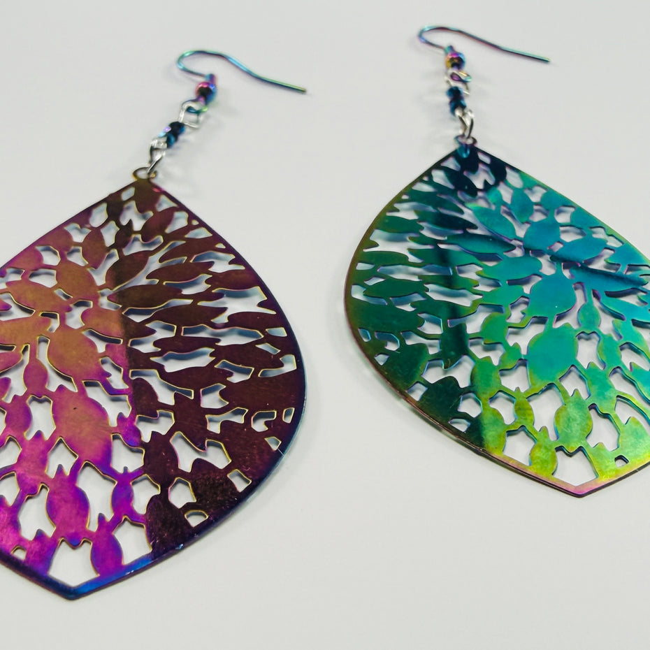 Edelstahl-Ohrhänger mit bunten Glasperlen